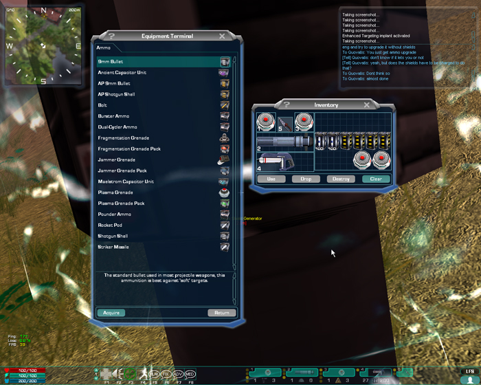 The Aegis Shield Generator is similar to the Cloaking bubble of an Advanced Mobile Station, as it hides anything inside of its bubble from sight. Fortification Engineers can upgrade the Aegis to have a shield by repairing it with a Nano Dispenser (normal ammunition). A fully upgraded shield provides roughly the equivalent of a Phalanx Wall Turret worth of armor protection. Aegis Shield work rather similar to the one gained by a Shield Module. They block all fire, both enemy and friendly, as well as enemy vehicles. Note that friendly fire at the shield will reduce the Shield's power.